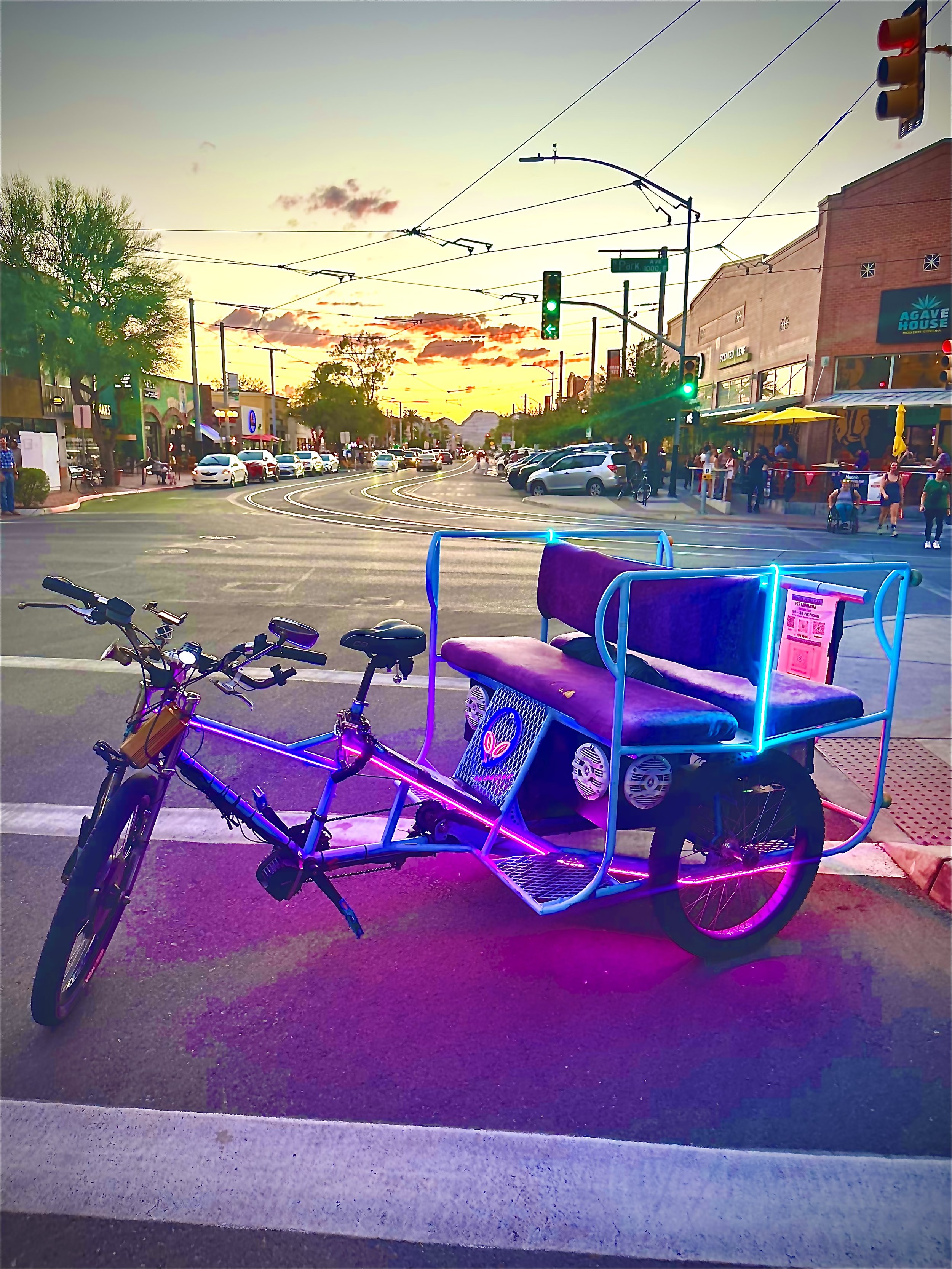 Premier Pedal Cab is a pedal powered transportation company based out of Downtown Phoenix, AZ and founded by owner/operator Adam Newton. With over 15 years experience, Premier Pedal Cab has operated at countless events all over Arizona and across the country, including but not limited to major music festivals (Coachella/Stagecoach, Bonnaroo, EDC, Firefly, Country Thunder, Lollapalooza, etc.), sporting events, Super Bowl, conventions, NASCAR, political rallies, auto auctions, parades, comedy shows and much more! All of our pedicabs have LED lighting, stereos for music and electric assist motors to get patrons around fast and fun! Premier Pedal Cab’s pedicabs are insured and will meet the standards of any event in order to operate in compliance with event management and local regulations.